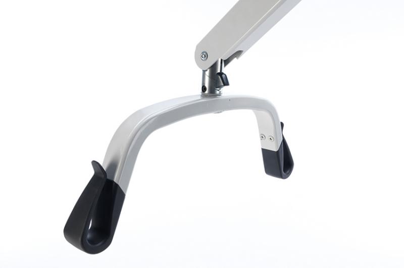 - O design curvilíneo do braço e da barra da cesta permite manter o contacto visual entre o cuidador e o utilizador durante todo o processo de transferência. Está também disponível um sistema amortecedor – SLOW’R (opcional) – que controla o movimento de descida do braço do elevador de transferência.