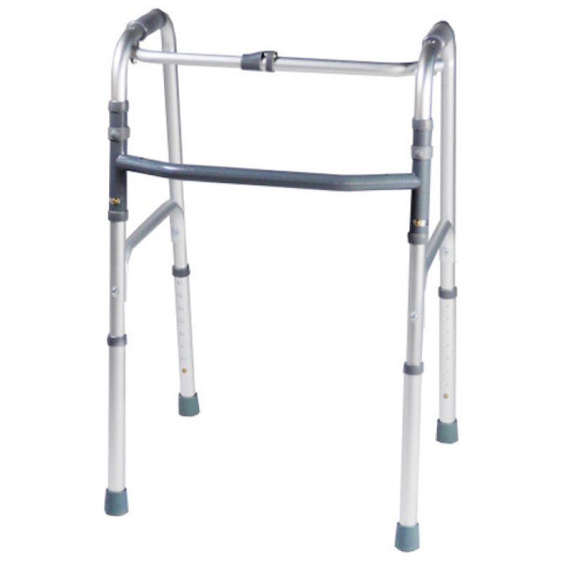 Andadeira 2 em 1: Poderá assumir a função de andadeira fixa ou deambuladora (poderá mover-se alternadamente entre esquerda e direita) com simples ajustes. Conta com uma estrutura em alumínio e é facilmente encartável, tornando-se na andadeira ideal para quem pretende um auxiliar de marcha dinâmico e prático.