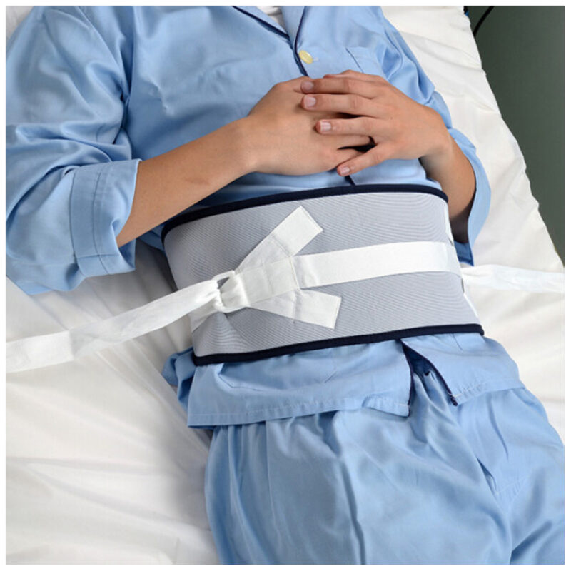 Cinto abdominal em espuma para apoio em cama ou cadeira concebido para imobilizar o doente de forma segura na cama ou em cadeira, permitindo a rotação do corpo até 90º para cada lado, sem risco de queda.