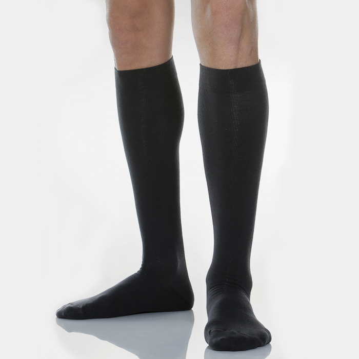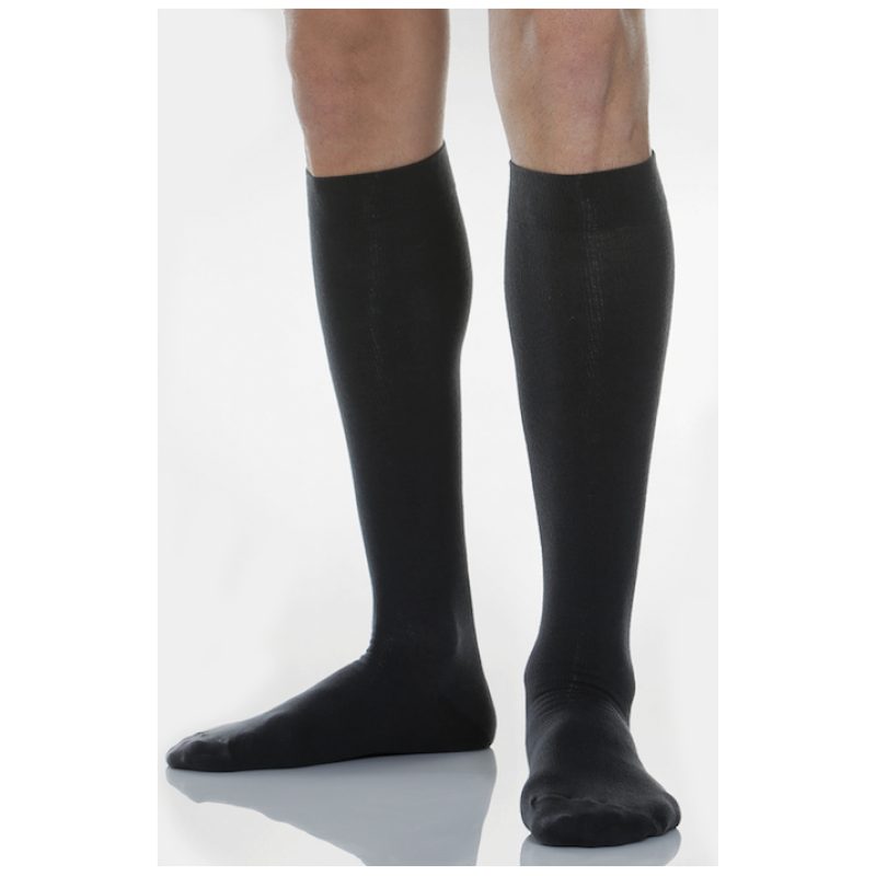 Meias de descanso em algodão, até ao joelho, unissexo, com compressão graduada. Fabricadas com algodão macio em contacto com a pele, incluem banda elástica suave e confortável.