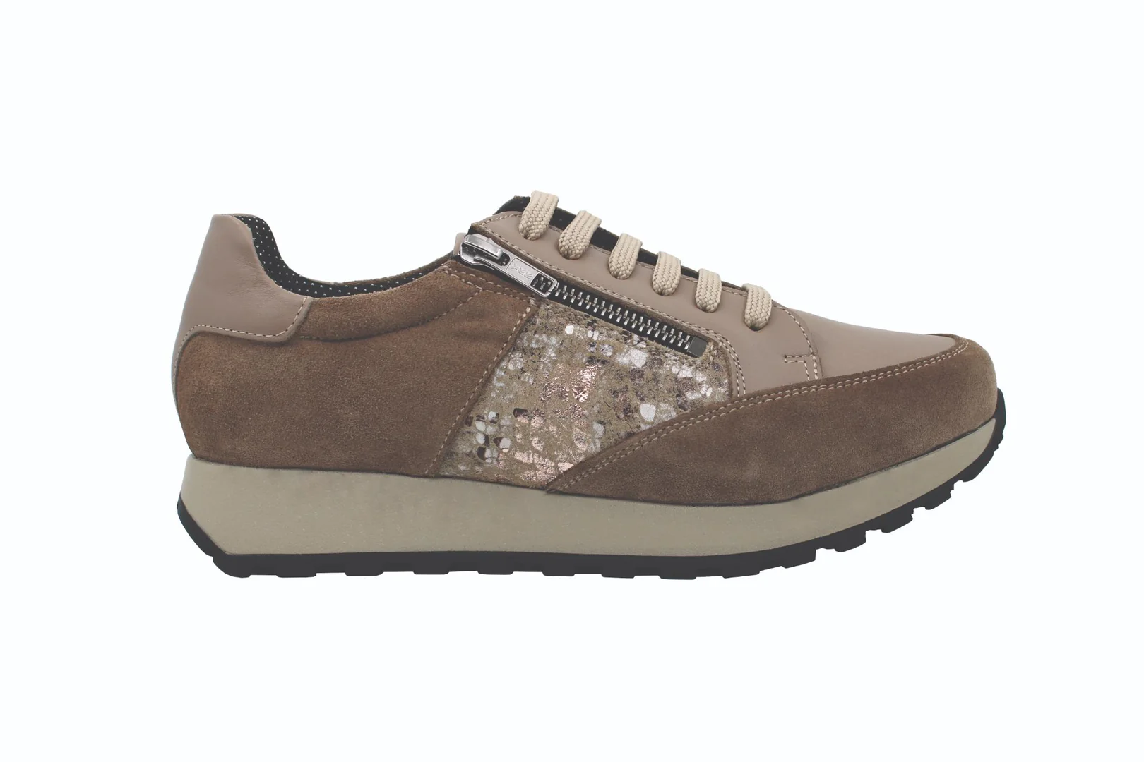 - Material: gáspea em pele natural / forro têxtil com iões de prata / palmilha têxtil com iões de prata e poliuretano (PU) / sola em poliuretano (PU) / palmilha extra em cortiça