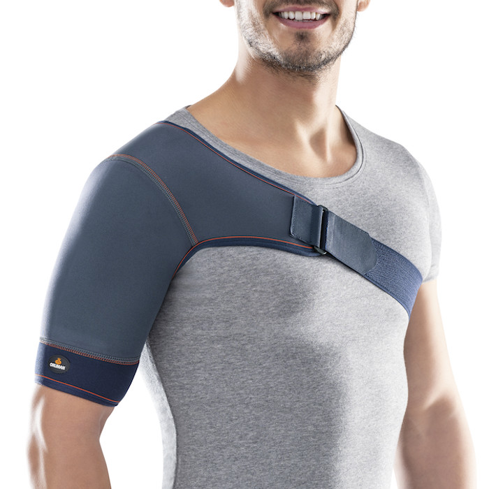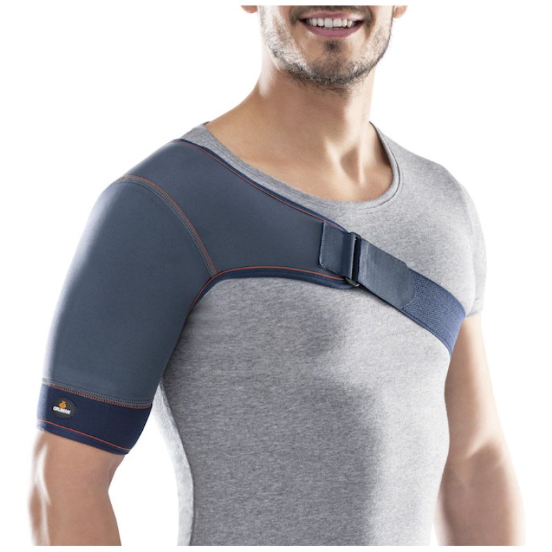 Suporte para ombro ambidestro confecionado em neoprene de células fechadas para uma adequada conservação do calor corporal. Tira de aperto com duplo ajuste (anterior e posterior) que permite uma tensão personalizada e uma colocação fácil, bem como um protetor axilar para maior conforto.