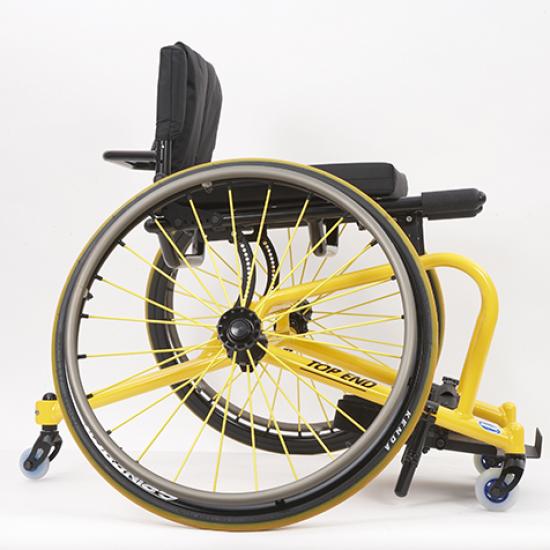A cadeira de Basquetebol e Ténis Top End® Pro™, da Invacare, é desenhada para atletas que querem durabilidade e rapidez combinado com um ajustamento fácil e bom preço.
